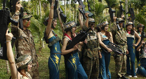 世界休閑小姐身著迷彩進行真人CS訓(xùn)練-使用銘恒真人CS裝備