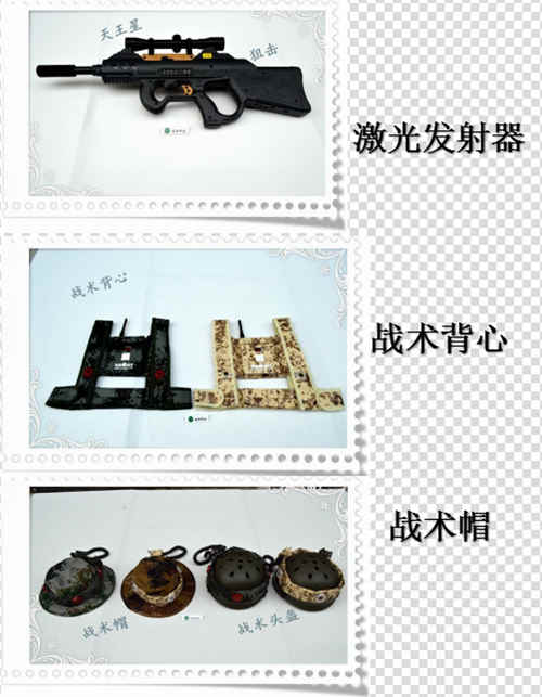 單兵裝備含3樣。戰(zhàn)術(shù)背心、戰(zhàn)術(shù)帽/盔、激光發(fā)射器(激光發(fā)射器)